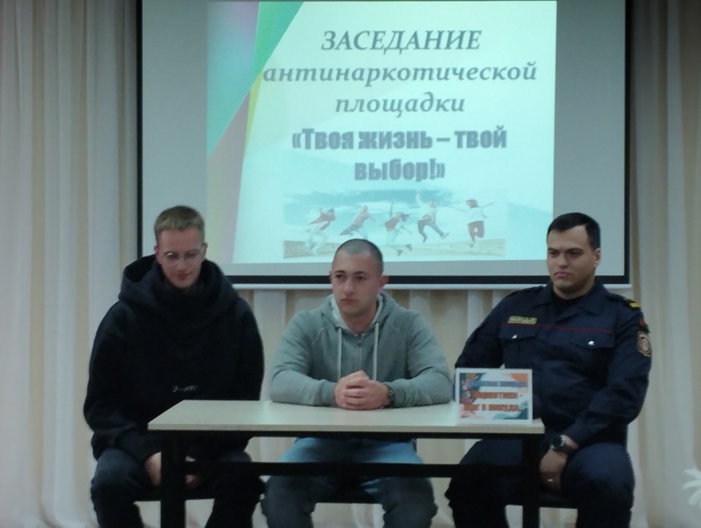 Диалоговая площадка «Шаг в никуда…» в рамках антинаркотической площадки «Твоя жизнь – твой выбор!» состоялась 10 октября в рамках заседания антинаркотической площадки «Твоя жизнь – твой выбор!». Члены антинаркотических отрядов приняли участие в диалоговой площадке «Наркотики – путь в никуда…» с лицами, отбывающими наказание за употребление наркотических средств исправительного учреждения открытого типа №29 г.Волковыска.